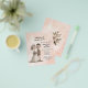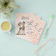 Para os pequenos convites de casamento, escolha este belo convite em papel de folheto. Uma noiva e noiva esquisitas sobre um fundo cor-de-rosa, com uma bonito imagem floral no verso.