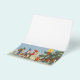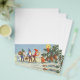 Ilustração vintage de Natal alegre vitoriano com imagens de elfos com barbas e chapéus pontiagudos caminhando na neve. Eles se parecem com tomte, nisse ou tomtenisse (Suécia) nisse (Noruega e Dinamarca) ou tonttu (Finlândia), uma criatura mitológica do folclore nórdico escandinavo. O elfo azul está carregando uma coroa, o elfo verde está carregando um saco cheio de brinquedos e o elfo vermelho está carregando uma vela acesa. Eles estão em uma floresta no inverno e há um ursinho de pelúcia sob uma árvore de abeto que tem pinhas e uma vela acesa.