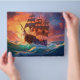 Experimente a força bruta e o drama do alto mar com nossa pintura cativante representando um navio de vela em um mar tempestuoso. À medida que a feroz mancha do pôr do sol se chocava com as nuvens sinistras, um navio solitário bateu corajosamente contra as águas furiosas, suas velas voando contra o vento implacável. Cada pincelada captura a intensidade da tempestade, desde as ondas torrenciais que se chocam contra o casco do navio até o céu tumultuoso que se abfunde com tons de laranja e vermelho. Apesar do caos, há um senso de resiliência e bravura retratado nesta cena, nos lembrando do espírito indomável dos marítimos encarando a fúria da natureza. Seja exibido em uma sala com temas náuticos ou como uma peça central em greve em sua casa, esta pintura evoca certamente um senso de aventura e admiração em todos que a observam. (1001).