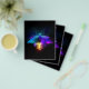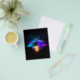 Voz mecânica, antiga, com lâmpada e asas finas brilha cor de laranja, roxo, turquesa sobre fundo preto. Estilo Steampunk.