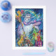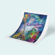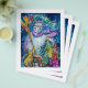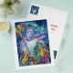 Pintura acrílica colorida, branca e engraçada, de Búlgaro Lumini (c).Noite de inverno com boneco de neve, árvore de natal, brinquedos, gato, coruja, marionetas, plantas ornamentais e bagas ocas em amarelo vibrante, azul, verde, vermelho, branco rosa, cores.
