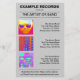 Um modelo de folheto adequado para um novo lançamento do álbum. Registre o nome da empresa no topo (frente e verso) junto com o nome do artista/banda. Imagem principal do cobrir do álbum (adequado para uma imagem quadrada) no centro com os detalhes abaixo. Detalhes de disponibilidade na parte inferior. O lado inverso tem os mesmos detalhes de cabeçalho e rodapé junto com três miniaturas de álbuns com detalhes ao lado. Esta opção poderia ser utilizada para outros álbuns pelo mesmo artista/banda ou utilizada para promover álbuns por outros artistas/bandas. Este folheto é personalizável de muitas maneiras, todos os elementos são personalizáveis. As cores da cor de fundo e da fonte também podem ser alteradas.