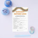 Entra num mundo de melodias brancas e canta junto com o nosso jogo de Chá de fraldas de "Groovy Baby" Rhymes! Esta reviravolta exagerada num jogo clássico irá transportá-lo de volta para a idade do ouro das rimas de berçário, com uma vibração que complementa perfeitamente a celebração do chá de fraldas. Infundido com as cores vibrantes, padrões psicodélicos, e fontes divertidas dos anos 60 e 70, o nosso "Groovy Baby" Nursery Rhymes Quiz captura a essência da era do bosque. É uma maneira deliciosa e divertida de testar seu conhecimento de rimas de berçários amados e compartilhar uma experiência nostálgica com seus convidados. O jogo apresenta uma série de questões sobre temas rimados no berçário, desafiando os participantes a lembrar as personagens, letras e histórias encantadoras desses favoritos da infância eterno. De Little Miss Muffet a Humpty Dumpty, este teste cobrir uma grande variedade de rimas clássicas de berçário que vão fazer todos cantarem em breve. Os cartões de jogo são adorados com designs retrorinspirados, incluindo cores caleidoscópicas e padrões engraçados, evocando um senso de alegria e capricho. Cada cartão é meticulosamente trabalhado para mergulhar seus convidados no ambiente de ranhura do seu chá de fraldas e criar uma experiência memorável. O jogo pode ser jogado individualmente ou em equipes, provocando competição amigável e discussões vivas enquanto os convidados correm para ser os primeiros a gritar as respostas corretas. É uma atividade perfeita para engajar hóspedes de todas as idades e juntar gerações em um amor compartilhado por rimas de berçários. Incluídos no conjunto de jogos, há cartões de jogo suficientes para cada convidado, assim como uma chave de resposta para uma classificação fácil. As placas são impressas em materiais de alta qualidade, garantindo durabilidade e permitindo que você aprecie as memórias deste chá de fraldas de entalhe muito depois que a parte terminar. Então, preparem-se para cantar, dançar e relembrar com o nosso Jogo de Chás de fraldas de Enfermeiro "Groovy Baby" Rhymes Quiz. É uma adição fantástica à sua celebração retrortemática, trazendo risos, nostalgia, e uma experiência memorável para todos os envolvidos. Deixem as boas vibrações fluírem enquanto mergulham no mundo encantador das rimas de berçários e celebram a chegada iminente do seu bebê ranzinza!