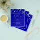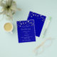 Por favor, note que este convite está no papel de folheto e é muito fino. Os envelopes não estão incluídos. Para convites mais espessos (mesmo design) visite nossa loja. Um fundo azul real, decorado com estrelas de prata brancas e falsas. Personalize e adicione seus nomes e detalhes.