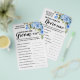Flores Azuis O que o Groom disse? Jogo de versão em inglês e espanhol do chá de panela incluído (frente e verso). Mudar a redação para o design para as versões em inglês e espanhol. Para personalização adicional (pergunta de alteração e outra redação, cor da fonte, estilo da fonte ), clique em personalizar, role para baixo e clique no link "clique para personalizar mais". Como jogar: os convidados adivinham as respostas que o noivo disse sobre a noiva