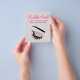 Produtos personalizados de marca da empresa que correspondem a cartões de visitas de extensão de lash. Desenho de pestanas longas em cinzas, bege preto e rosa. Perfeito para a promoção da sua empresa. Adequado para maquiadores, extensão de lash, esteticistas, estilistas, salão spa, salão de cabelos e beleza ou agência modelo. Personalizável.