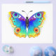 Arco-íris, realista, desenhado artisticamente, borboleta pavão de cores brilhantes com asas detalhadas texturizadas sobre fundo branco. Borboleta-arco-íris.
