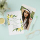 Orçamento Personalize Lemon Watercolor Elegante e Modern Watercolor Primavera Summer Style Convite para Formatação em fundo branco com sua mensagem e detalhes e foto no verso. Este convite para na moda inclui verde-limão de limão com tipografia de guiões bonitinhos e elegantes para o Segundo grau especial ou Formando universitário. Esta opção não tem envelopes. Se quiser uma opção de papel mais espesso com envelopes, visite https://www.zazzle.com/budget_2023_photo_lemon_grad_party_invitation-256160065754489272