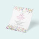 Orçamento 60º convite de aniversário com design botânico floral cor-de-rosa bonito. Trendy, fofo borda de flor silvestre de aquarela. Fácil de mudar o texto. Este papel é mais fino que o papel da placa.