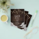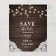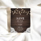 Orçamento Boho Chic Casamento Salve a data que o folheto mostra jares de pedras e luzes de cordas na madeira.