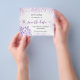 Observe que esta opção Save the date (Salvar a data) está no papel do folheto e muito fina. Os envelopes não estão incluídos. Para salvar o cartão Data (mesmo design) mais espesso, visite nossa loja. Uma garota e uma moda Salvem a data para uma Quinceañera, 15 festa de aniversário. Um fundo branco de na moda, decorado com pó brilhante violeta, colorido de lavanda e um vestido. Personalize e adicione uma data e nome/idade. Letras pretas e violetas. O texto: Salvar a Data é gravado com um script de estilo com letra de tendência grande.