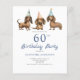 Dachshund Dachshund 60º convite de aniversário. Fácil de mudar o texto. Design de aquarela fofa.