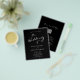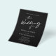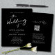 Convite de Casamento Preto Moderno e Chic com Código QR de RSVP Tudo em Um... Nosso convite de casamento preto e branco minimalista e acessível apresenta caligrafia moderna combinada com texto serifado e sem serifa para um convite de casamento simples e chique. O verso do convite também exibe o código QR do seu site de casamento, bem como o URL do site em si, permitindo que os convidados respondam facilmente online e visualizem todos os detalhes normalmente enviados em um pacote de casamento. O modelo gráfico do código QR de exemplo e todo o texto de exemplo (além dos elementos de caligrafia gráfica) podem ser facilmente revisados com suas próprias informações no modelo de personalização. POR FAVOR, OBSERVE: O papel para o nosso convite de orçamento mais acessível é de 80 lb. de peso e a espessura do papel mais frequentemente usada para panfletos de negócios e eventos. Seu fornecedor de suprimentos de escritório ou loja online poderá fornecer os envelopes A6 para esses convites. Nossa Coleção de Casamento de Caligrafia Moderna e Chic inclui um convite de orçamento com código QR de peso ligeiramente mais pesado, bem como cartões planos tradicionais com seu código QR neles.