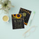Celebração do casamento russo e barato de na moda de recepção tudo em um modelo de folheto de papel de convite com código QR para RSVP online em fundo de madeira marrom-escura apresentando grandes buquês de girassol de ouro amarelo, cordas de luzes cintilantes e um roteiro de tipografia de ouro falsa. ++++++++++ Fácil de personalizar com seus detalhes! +++++++++++ O convite é adequado para casamentos de campo rústico em quintais exteriores. +++++++++ LEIA ISTO ANTES DE COMPRAR! Este é um cartão de casamento de barato orçamentário impresso em um FLYER. +++ Observe que o PAPEL ORÇAMENTAL É THIN - Você pode fazer upgrade para que este cartão seja impresso no estoque de cartão +++ ENVELOPES NÃO INCLUÍDO. +++ Verifique todas as informações e ortografia do seu texto porque você receberá exatamente o que você vê - ninguém mais verificará nada antes de imprimir. +++ Esta placa foi projetada para o tamanho de 4,5" x 5,6". Caso você escolha outro tamanho do cartão e o texto saia da página, tudo precisa ser corrigido antes de adicionar o produto ao carrinho. Peça ajuda ao Serviço de Design ao Vivo.