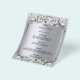 Por favor, note que este menu está no papel folheto e muito fino. Para menus mais espessos (mesmo design) visite nossa loja. Um menu de casamento elegante e glamouroso. Rosas de cor branca e preta, como decoração. Modelos para seus nomes, data e menu de casamento. Um falso quadro prateado e uma cor metálica de aparência fina prateada. Letras pretas coloridas. Fundo: fundo metálico prateado falsa.