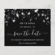 Uma moda e moda Salve a data para uma festa de aniversário 40th (ou qualquer idade). Um fundo na moda preto decorado com estrelas de falso prata. Personalize e adicione uma data e um nome/idade 40. O texto: Salvar a Data é escrito com um script de estilo com letra de tendência grande.