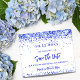Observe que esta opção Save the date (Salvar a data) está no papel do folheto e muito fina. Os envelopes não estão incluídos. Para Cartões salve a data mais espessos (mesmo design) visite nossa loja. Um fundo branco chic decorado com confete azul real. Personalize e adicione uma data e nome/idade. O texto: Salvar a Data é gravado com um script de estilo com letra de tendência grande. Texto azul real.