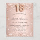 Por favor, note que este convite está no papel de folheto e é muito fino. Os envelopes não estão incluídos. Para convites mais espessos (mesmo design) visite nossa loja. Para uma elegante 18ª festa de aniversário. Um fundo de gradiente rosa ouro. Decorado com rosa dourado falso poeira brilhante. Personalize e adicione um nome e detalhes da parte. O nome é escrito com um script de estilo manuscrito. O número 18 é escrito com uma fonte no estilo do balão.