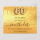 Observe que esta opção Save the date (Salvar a data) está no papel do folheto e muito fina. Os envelopes não estão incluídos. Para salvar o cartão Data (mesmo design) mais espesso, visite nossa loja. Uma moda e moda Salve a data para uma 60ª festa de aniversário. Um fundo metálico moderno, falho, com aspecto decorado com pingos de brilho sujo, aparência de pingar. Personalize e adicione uma data e um nome. O texto: Salvar a Data é gravado com um script de estilo com letra de tendência grande. Número 60 com uma fonte no estilo do balão.