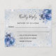 Um fundo com aparência prateada falsa, decorado com faíscas azuis claras falsas e flores azuis. Personalize e adicione a data de resposta e seus nomes.