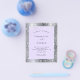 Por favor, note que este convite está no papel de folheto e é muito fino. Os envelopes não estão incluídos. Para placas mais grossas (mesmo design) visite nossa loja. Um convite de casamento moderno e elegante. Mal prateado metálico e violeta, fundo colorido de lavanda decorado com pó falso prateado. Personalize e adicione seus nomes e detalhes do casamento. Letras pretas coloridas.