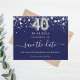 Observe que esta opção Save the date (Salvar a data) está no papel do folheto e muito fina. Os envelopes não estão incluídos. Para salvar o cartão Data (mesmo design) mais espesso, visite nossa loja. Uma moda e moda Salve a data para um aniversário de 40 anos. Um fundo azul marinho colorido. Decorado com estrelas de falso prata. O texto: Salvar a Data é gravado com um script de estilo com letra de tendência grande. O número 40 é escrito com uma fonte de estilo de balão.