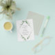 Convites de Casamento de Eucalipto Botânico e Verde e Dourado Geométrico Aquarela Primavera em fundo Branco - inclui tipografia de roteiro bonita e elegante com folhas botânicas modernas e folhagem para a celebração especial do dia do casamento.