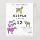 Uma coleção engraçada de cabras coloridas e psicodélicas, cabras-pombas e cabras em cabras rosas, roxas, azuis, laranja, amarelas e aqua vibrantes. Um convite de aniversário de 12 de cabra multicolorido. Este adorável convite de festas de animais fazendas é fácil de personalizar para criar um convite de festas único adequado para crianças e amantes adultos de cabras. Imagens de cabras psicodélicas divertidas da artista Catherine Sweetman