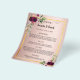Por favor, note que este menu/programa noturno está no papel folheto e muito fino. Para menus/programas mais espessos (mesmo design) visite nossa loja. Um elegante cardápio de noiva boêmia e programa noturno. Penas e rosas de cor aquosa em burgundy. Modelos para seus nomes, data, menu de casamento e programa. Um quadro dourado falso e um fundo de gradiente dourado rosa chic.