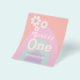 Groovy um, comemore sua primeiro aniversario com este legal retrato dos anos 70, pastel colorido colorido de lavanda roxo, rosa, horta verde-menta e arco-íris laranja no primeiro convite orçamentário festa de aniversário. Com simples design de margarida e modelos fáceis de usar, este convite personalizado define o que é visto para uma legal festa de garotas hippie. Arte original da artista Catherine Sweetman