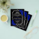 Convite de festa de Quinceanera em prata, preto e azul real. Características incluem fonte manuscrita, rosas azuis reais, tiara e confetes. Design sofisticado em azul safira com detalhes em prata brilhante. Perfeito para uma celebração elegante e glamorosa. *** Por favor, note que este design será impresso em um papel muito fino e não acompanha envelopes. Perfeito para convites econômicos. Se você está procurando pelo mesmo design, mas em papel mais grosso, visite nossa loja.