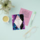 *** OBSERVAR que esta opção de orçamento é um folheto (envelopes NÃO incluídos), daí o preço baixo - o SATIN é a opção mais espessa aqui. Para mais opções de convite (tipos de papel/cartão mais espessos/maiores TRANSFERIR para 'convite' usando as ferramentas de página *** FAQS *** Este item tem campos de modelo de texto AMBOS os lados para agregar valor! Adicione detalhes adicionais, como RSVP, Direções, Detalhes do Local, um código de verificação de QR etc. e para personalizações e edições, acesse o SERVIÇO DE DESIGNER LIVRE LIVE da Zazzle. Galaxy Agate design.