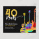 40 convites de festas rochosos de rock and roll aniversário de 40 anos com três designs legal e coloridos de ilustração de guitarra de aquarela psicodélica. Uma guitarra elétrica com padrão de chama Fire e guarda vermelha de picada, uma guitarra semissótica multicolorida e uma ilustração de arte acústica clássica psicodélica com tipografia legal personalizada negra e dourada. Este modelo fácil de usar cria o convite orçamentário perfeito para celebrar quarenta no estilo rock n roll e é ideal para um guitarrista, músico e amante da música. Qualquer guitarrista lhe dirá que você nunca pode ter muitas guitarras. Este legal instrumento musical moderno design comemora a energia musical deste maravilhoso instrumento musical e é a forma perfeita de celebrar o quadragésimo aniversário. Arte original da artista Catherine Sweetman