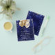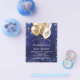 Por favor, note que este convite está no papel de folheto e é muito fino. Os envelopes não estão incluídos. Para convites mais espessos (mesmo design) visite nossa loja. Um convite moderno, na moda e glamouroso para um Chá de fraldas, celebrando um menino. Um fundo azul marinho, decorado com brilho e cintilações douradas falsas e balões ouros. A cor azul é irregular. Personalize e adicione um nome e detalhes da parte.