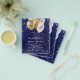 Por favor, note que este convite está no papel de folheto e é muito fino. Os envelopes não estão incluídos. Para convites mais espessos (mesmo design) visite nossa loja. Um chá de panela moderno, na moda e glamouroso. Um fundo azul marinho, decorado com brilho e cintilações douradas falsas e balões ouros. A cor azul é irregular. Personalize e adicione um nome e detalhes da parte.