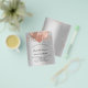 Por favor, note que este convite está no papel de folheto e é muito fino. Os envelopes não estão incluídos. Para convites mais espessos (mesmo design) visite nossa loja. Para uma elegante Quinceañera, 15. Um fundo metálico falso prateado. Decorado com ouro rosa e brilho fino prateado, pintura com aspecto e balões. Personalize e adicione um nome e detalhes da parte. O nome é escrito com um script de estilo manuscrito
