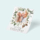 Cartão de Natal Feliz Foto com Floral de Feriado Branco e Verde, Galhos de Pinheiro, Pinhas com um Fundo Simples no estilo Rústico e Orçamento