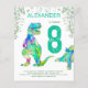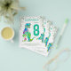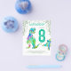 Para a criança que ama os dinossauros, este T-Rex colorido e um belo stegossauro convidam fãs de Dino para a 8ª festa de aniversário para amantes de dinossauros. Personalize este convite psicodélico e colorido Tyrannosaurus e stegossauro adicionando o nome do aniversariante ou menina, o número do aniversário e os detalhes da festa e você está preparado para um feliz e cheio de dinossauros verde-teal com tema dino aniversário. Todas as espécies de dinossauros são bem-vindas. Idade jurássica pré-histórica Ilustrações do dinossauro, obra de arte original de Catherine Sweetman