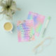 Por favor, note que este convite está no papel de folheto e é muito fino. Os envelopes não estão incluídos. Para convites mais espessos (mesmo design) visite nossa loja. Uma Quinceañera feminina e feminina, convite de aniversário 15. Na frente: Um arco-íris, fundo holográfico colorido em roxo, rosa, verde-menta, ouro-rosa. Decorado com brilho pinto-claro, brilhos. Personalize e adicione um nome e detalhes da parte. O nome é escrito com um script de estilo manuscrito, letras cor roxa.