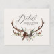 orçamento Folhagem rustica, floral e escente de escadas com detalhes de casamento cartão de cerimônia. Com uma bela folhagem de aquarela, florais brancos, fatia de madeira e escrevendo manual de roteiros. Este convite moderno certamente define o estilo para a sua próxima festa.