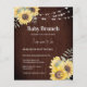 Procurando o convite temático para seu próximo chá de fraldas? Não olhe mais do que o nosso "Chá de fraldas de girassol de madeira rustica do orçamento"! Este encantador convite apresenta um belo design de girassol sobre um fundo de madeira rústica, e está certo de dar o tom para o seu evento especial. Com o foco na acessibilidade, este convite é a escolha perfeita para aqueles que procuram ficar dentro de um orçamento sem sacrificar o estilo.