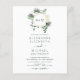 Orçamento Chic e Moderno Monograma Palmeiras Tropicais Verde Esmeralda e Flores Brancas com Convites de Casamento de Outono, Inverno, Primavera ou Verão em Aquarela - inclui uma bela e elegante tipografia de letra cursiva para a celebração especial do Casamento.