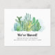 Cactos de aquarela moderna plantam cartões de orçamento de anúncio em movimento botânico para que seus amigos e familiares saibam onde o partido do aquecimento das casas vai estar acontecendo. Altere os detalhes sobre esta nova casa, mude de endereço para o cartão de nota de anúncio das plantas do deserto de cacto verde clicando no botão "Personalizar" acima. No verso, adicione sua mensagem especial e verifique seus detalhes de nome e endereço