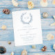 Uma coral enrola as iniciais do monograma da noiva e do noivo no topo deste orçamento, um mínimo de convite branco e azul à costa. A parte de trás é uma cor azul poeirenta sólida. Este convite para casamento costeiro é de tamanho menor impresso em papel mais barato, sem um envelope. Se você quiser outra versão do orçamento em um papel ligeiramente melhor, com um envelope que custe um pouco mais, entre em contato comigo através do Zazzle Chat, ou use a opção Transferir para uma "folha de papel simples" 4,5"x 5,6".