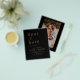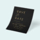 Cartões salve a data Dourados e negros legantes que têm uma foto na frente. Os Cartões salve a data contêm uma moderna tipografia cursiva escrita escrita escrita escrita escrita escrita escrita escrita que é elegante, simples e moderna a ser usada depois da simples celebração do dia de casamento minimalista.