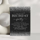 Prata do orçamento e brilho preto personalizado em qualquer idade (13, 16º, 18º, 21ruas, 30, 40º, 50º, 60º) Convite de aniversário adulto. Este é o convite perfeito (treze, dezesseis, dezoito, vinte um, trinta, quarenta, cinquenta ou sessenta) para diversão e aniversário da Trendy para uma Festa de aniversário Juvenil Moderna Elegante. Entre em contato com o designer para encontrar itens personalizados correspondentes.
