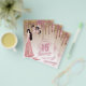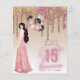 O charme feminino é a essência deste convite de festa de 15 anos, com brilho rosa e dourado rosa falso. Os campos de modelo de texto em ambos os lados permitem que você inclua RSVP, Registro de Presentes e quaisquer outros detalhes do evento da festa sweet15 conforme necessário. O design apresenta brilho pingando, balões foil e uma garota morena com um vestido brilhante rosegold. Também disponível com cabelo loiro e ruivo. Visualize a coleção em anexo para ver as variações.