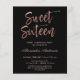 Orçamento Sweet 16 Rosa Dourado e Preto Moderno e Elegante Convite de Aniversário de Sweet Sixteen com Metal Brilhante. Este convite de Sweet Sixteen é perfeito para a garota feminina que deseja celebrar em Rosa Pink Dourado. Se precisar de itens adicionais correspondentes, entre em contato com o designer.