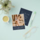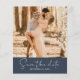 Foto boho do guião gráfico salvam o folheto de data com seus nomes, data de casamento, local e site de casamento em branco elegante, escrita manual, caligrafia e tipografia moderna em um fundo azul escuro. Basta adicionar seus detalhes pessoais e sua foto favorita! Desenvolvido exclusivamente para você pelo Happy Dolphin Studio. Se precisar de ajuda ou produtos correspondentes, entre em contato conosco através do bate-papo da loja. Estamos felizes em ajudá-lo a fazer seu casamento o dia mais bonito!