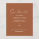 Foto boho do guião gráfico salvam o folheto de data com seus nomes, data de casamento, local e site de casamento em caligrafia branca elegante com guião manuscrito e tipografia moderna em um fundo de terracota. Basta adicionar seus detalhes pessoais e sua foto favorita! Desenvolvido exclusivamente para você pelo Happy Dolphin Studio. Se precisar de ajuda ou produtos correspondentes, entre em contato conosco através do bate-papo da loja. Estamos felizes em ajudá-lo a fazer seu casamento o dia mais bonito!